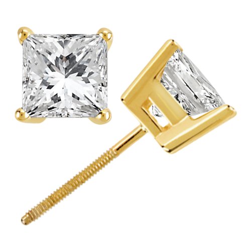 Black Friday 2010 0.75ct. Princess Cut Diamond Stud Earrings 14k Yellow Gold (J-K, I1-I2)