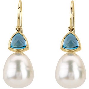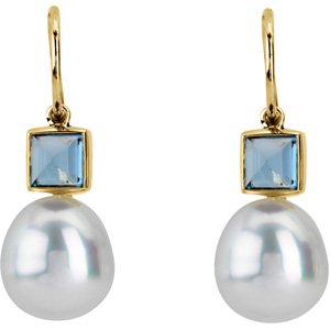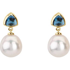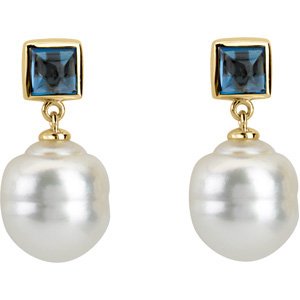 06.00 MM/11.00 MM Fine Ci 14K Yellow Gold South Sea Cultured Pearl And Genuine London Blue Topaz Earring