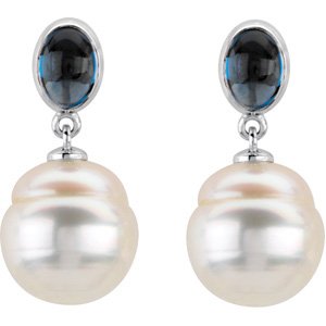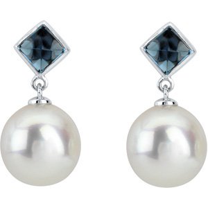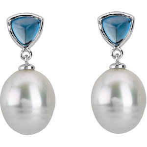 Black Friday 2010 06.00 MM/11.00 MM Fine Ci 14K Yellow Gold South Sea Cultured Pearl And Genuine London Blue Topaz Earring