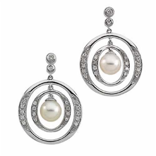 Black Friday 2010 0.25 Ct.T.W. Round Brilliant Cut Diamonds, FreshWater Cultured White Pearl, 14Kt. White Gold. FreshWater White Cultured Pearl and Diamond Dangling Earrings
