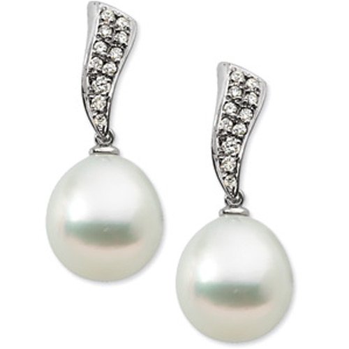 Black Friday 2010 0.25 Ct.T.W. Round Brilliant Cut Diamonds, 11 mm Round White Cultured South Sea Pearl, 14Kt. White Gold Earrings