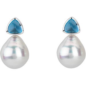 06.00 MM/11.00 MM Fine Ci 14K White Gold South Sea Cultured Pearl And Genuine London Blue Topaz Earring