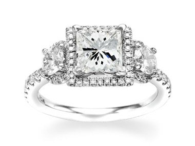 >>>> Only $1,705.00 Best Buy This amazing semi-mount engagement ring is made of 18k white gold. There is a row of round diamonds over the shank and two bigger stones on the right and left from the centerstone. Total weight of the diamonds is 0.86ct, the setting is ready to fit princess cut diamond. This gorgeous ring is available in any size.