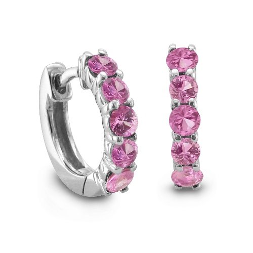 Black Friday 2010 Certified 14k White Gold 5 Stone Natural Pink Sapphire Hoop Earrings - 1.50 cttw