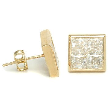 >>>> Only $42.99 Best Buy King Ice presents this pair of beveled edges 14K yellow gold stud earrings! These earrings feature an invisible inlay with 4 princess cut cubic zirconia stones and is sure to make someone happy!